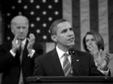 ![]() «Menschen sind ohne Arbeit, sie leiden, sie brauchen unsere Hilfe», sagte Obama. «Ich will unverzüglich ein Arbeitsbeschaffungsgesetz auf meinen Schreibtisch bekommen», forderte der US-Präsident. Nach dem Repräsentantenhaus müsse auch der Senat ein Gesetz zur Belebung des Arbeitsmarktes verabschieden. Strenge Regulierung der Finanzmärkte Die Wirtschaft habe zwar das Schlimmste der Finanzkrise überstanden, sagte Obama. Damit kleinere und mittelständische Unternehmen ihr Überleben sichern und neue Arbeitsplätze schaffen können, schlug er vor, die von den Grossbanken zurückgezahlten Staatshilfen im Umfang von 30 Milliarden Dollar zu deren Unterstützung einzusetzen. Zudem setzte sich Obama als Ziel, innerhalb der nächsten fünf Jahre die US-Exporte zu verdoppeln, um so bis zu zwei Millionen neue Jobs zu schaffen. Obama bekräftigte seine Pläne für eine strengere Regulierung der Finanzmärkte. Er werde jeden Gesetzentwurf zurückweisen, der keine «wahre Reform» bedeute, sagte Obama. Dreijähriges Einfrieren bestimmter Haushaltsposten Wie erwartet verschob Obama mit der Rede seine politischen Prioritäten hin zur Wirtschaftspolitik. Er betonte jedoch zugleich seine Entschlossenheit, sein wichtigstes Wahlkampfversprechen, jedem US-Bürger eine Krankenversicherung zu ermöglichen, umzusetzen. Angesichts der hohen Verschuldung seines Landes sprach sich Obama zudem für ein dreijähriges Einfrieren bestimmter Haushaltsposten aus.