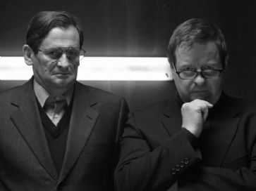 Beobachten das Verhör: Max Rüdlinger als Anstaltsleiter Salis, Hanspeter Müller-Drossaart als Jugendstaatsanwalt Barmettler. / Foto: SF