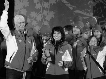 Bundespräsidentin Leuthard, die gleichentags in Vancouver eingetroffen war, liess sich nicht verdriessen. Sie war in den roten Dress der Schweizer Mission eingekleidet und verfolgte den Anlass mitten unter den Atheten. Bevor die Schweizer Fahne aufgezogen wurde, übergab sie den Verwaltern des olympischen Dorfes eine Schweizer Kuhglocke. Flotte Musik Umrahmt wurde die Zeremonie zunächst von Darbietungen der Ureinwohner und danach von flotter Musik, welche nicht nur die Athletinnen und Athleten der drei Länder, sondern auch die Schweizer Bundespräsidentin zum fröhlichen Tanz animierte. Sie fühle sich als kurzfristig nominierte Chefin der Schweizer Olympiadelegation geehrt, sagte die Bundesrätin, denn die Athletinnen und Athleten hätten alle «intensiv trainiert und schon hervorragende Leistungen vollbracht, um sich überhaupt für die Spiele zu qualifizieren.» Und wie viele Medaillen erwartet die Bundespräsidentin für die Schweiz? «Zwölf sollte es schon geben», sagte Leuthard, die in Vancouver auch die Eröffnungsfeier und am Samstag voraussichtlich in Whistler das Springen auf der Normalschanze (mit Simon Ammann) und die Männer-Abfahrt verfolgen wird. Bereits für Samstagabend ist die Rückreise geplant.
