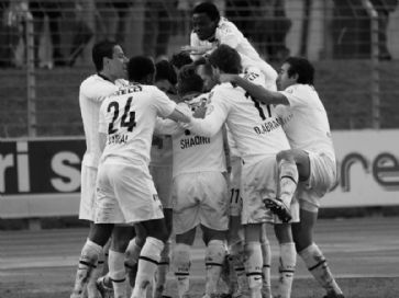 Bellinzona - Basel 0:2 (0:1) Comunale. - 3000 Zuschauer. - SR Grossen. - Tore: 45. Chipperfield 0:1. 62. Streller (Handspenalty) 0:2. Bellinzona: Gritti; Djuric, Lima, Mangiarrati, Thiesson (74. La Rocca); Edusei, Diarra; Diana, Mehmeti (46. Hima), Feltscher (74. Rossini); Ciarrocchi. Basel: Costanzo; Inkoom, Abraham, Cagdas, Safari; Gelabert, Cabral; Shaqiri, Chipperfield (65. Da Silva), Stocker (79. Die Spieler des FC Basel haben allen Grund zu jubeln. / Foto: EQ Images