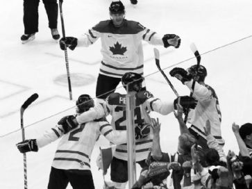 USA - Kanada 2:3 (0:1, 1:1, 1:0, 0:1) n.V. Tore: 13. Toews (Richards) 0:1. 28. Perry (Getzlaf, Keith) 0:2. Riesen Freude bei den kanadischen Spielern und Fans. /