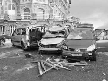 Zerstörte Autos im Ferien-Ort Luchon-Superbagnères nach «Xynthia». /