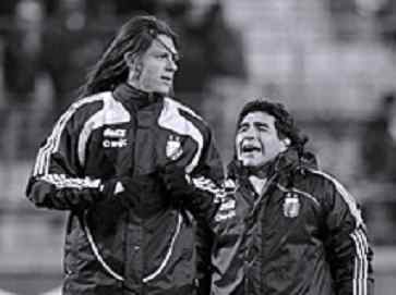 Martin Demichelis (links) und Nationaltrainer Diego Maradona. (Archivbild) /