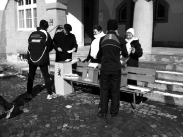 ![]() Heute kurz vor Mittag an der Urne vor dem Ratshaus in Appenzell. /
