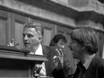 Kontrahenten: Bundesrat Didier Burkhalter und Nationalrat Paul Rechsteiner (SP, St. Gallen) während der Debatte zur 11. AHV-Revision in der grossen Kammer. /