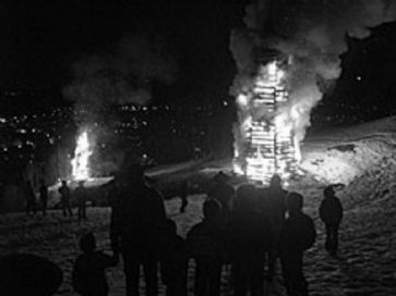 Mit einem grossem Feuer werden die bösen Geister und der Winter vertrieben. /
