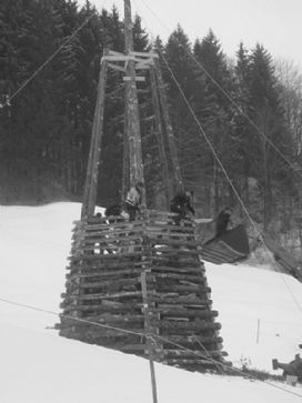 ![]() So kam es nicht selten zu Raubzügen untereinander. Heute wird die Tradition nur noch auf dem Freudenberg gelebt. Während einer Woche wird das Gerippe des Funkens aufgebaut und fortlaufend mit den eingesammelten Christbäumen aufgefüllt. Mit einem Fakelumzug mit Böllern und Krachern und vielen Besuchern aus der Region wird das Fest gefeiert.