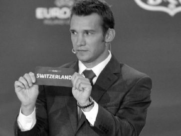 Andrej Schewtschenko zeigte im Februar das Schweizer Los für die Gruppe G. /