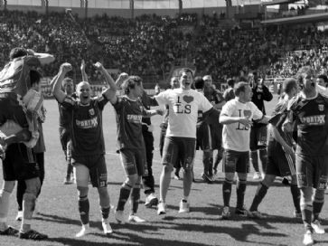 Glückliche Lausanne-Fans nach dem Spiel. /