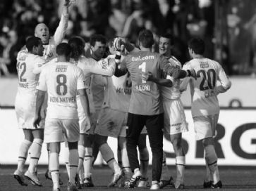Die Spieler des FC Zürich jubeln nach dem Sieg. /