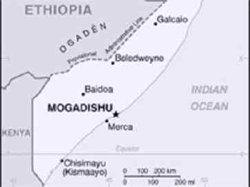 ![]() Ein Milizen-Sprecher bekannte sich zu dem Anschlag und sagte, zwölf Soldaten seien bei der Explosion getötet worden. Ein Sprecher der Friedenstruppen der Afrikanischen Union (AU) hingegen bestritt, dass es Tote gegeben habe. Die Al-Shabaab-Miliz kontrolliert grosse Gebiete im Süden und Zentrum Somalias, unter anderem auch mehrere Stadtteile Mogadischus. Die von den USA als terroristische Organisation angesehene Miliz will die Regierung des gemässigten Islamisten Sheik Sharif Ahmed stürzen. Somalia hat seit 1991 keine funktionierende Regierung mehr.