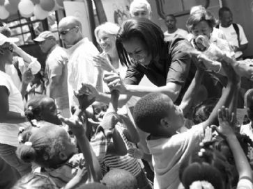 Michelle Obama begrüsst Kinder in einem haitianischen Kinderheim. /