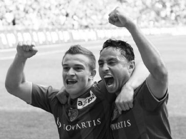 Basel - Luzern 5:0 (3:0) St.-Jakob-Park. - 30'571 Zuschauer. - SR Wermelinger. - Tore: 10. Da Silva 1:0. 14. Xherdan Shaqiri und Antonio Da Silva jubeln nach dem 1:0. / Foto: EQ Images