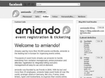 Durch die Integration der Facebook Social Plugins können User rund 100‘000 Veranstaltungen kommentieren und weiterverbreiten, welche amiando für den Ticketverkauf und für die Teilnehmer-Registrierung nutzt. Auf all diesen Interaktionen rund um die amiando-Events, können die Teilnehmer direkt über den Facebook Open Graph zugreifen.