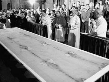 Das Tuch zeigt die Umrisse eines von Foltermalen gezeichneten Mannes. Seit vier Jahrhunderten wird es jetzt zum zehnten Mal öffentlich gezeigt. Die Präsentation soll bis zum 23. Mai dauern.