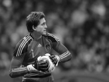 Absage per Telefon Der Teamkollege von Tranquillo Barnetta und Eren Derdiyok bei Leverkusen unterrichtete am Dienstag Bundestrainer Joachim Löw in einem Telefonat über den gemeinsam mit den behandelnden Ärzten gefassten Entschluss, die Fraktur operieren zu lassen. «Das war die schwierigste Entscheidung meines Lebens. Aber es wäre mir selbst, meinem Verein und der Nationalmannschaft gegenüber letztlich unverantwortlich gewesen, an der WM teilzunehmen. Medizinisch betrachtet ist es zwar möglich. Doch die Schmerzen sind so erheblich, dass ich auf Dauer sowohl im Training als auch in den Spielen keine Bestleistung hätte bringen können. In einem derart langen und intensiven Turnier aber ist das unerlässlich. Da braucht es topfitte Spieler», sagte Adler.Neuers Chance Für Adler wird voraussichtlich Manuel Neuer von Schalke 04 bei der WM zwischen den Pfosten stehen; Tim Wiese (Bremen) dürfte sein Ersatz sein.Rene Adler war als Nummer eins gesetzt im Deutschen Team. (Archivbild) /