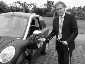 Teure Anschaffung Um «M-Way», so der Name des Elektromobilangebots, zu lancieren, investiert die Migros gemäss Naef zwischen 20 und 25 Mio. Franken. Nicht ganz günstig sind auch die angebotenen Fahrzeuge: Das in Finnland produzierte Elektroauto Think-City wird bis zu 60'000 Franken kosten.Migros-Chef Herbert Bolliger im M-Way Elektromobil. / Foto: Migros-Genossenschafts-Bund
