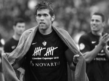 ![]() Benjamin Huggel im Cup-T-Shirt. Es war der 10. Cupsieg für den FC Basel. /