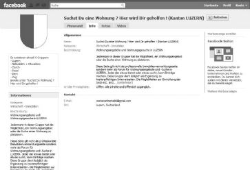 ![]() Zur Zeit zählt die Gruppe 983 Mitglieder. Der Gründer der Gruppe kündigte an, weitere Gruppen für andere Kantone zu gründen. Unter den Infos dieser Facebook-Gruppe steht, dass diese Seite keine professionelle Immobilienseite sei, sondern einfach als Ergänzung zu den grossen Wohnungs-Such-Portalen dienen soll. Ähnlich dem Zettel am Schwarzen Brett bei der Uni.