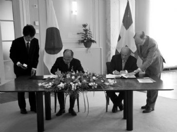 Doppelbesteuerungsabkommen mit Japan unterzeichnetBern - Finanzminister Hans-Rudolf Merz und Japans Botschafter Ichiro Komatsu haben in Bern das Protokoll zur Änderung des Doppelbesteuerungsabkommens Schweiz-Japan unterzeichnet. Es enthält Bestimmungen über den Informationsaustausch nach OECD-Standard.ade / Quelle: sda / Freitag, 21. Mai 2010 / 11:37 h