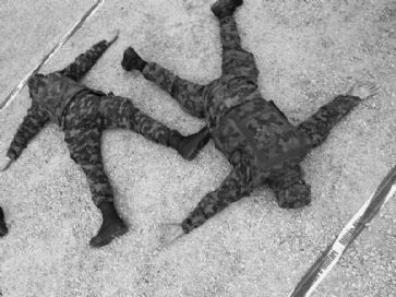 Flachgelegen: Rekruten der Rettungstruppen-RS 75 bei einer Pfefferspray-Uebung.