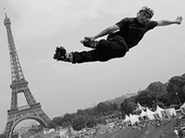 Inliner-Weltmeister springt vom EiffelturmParis - Mit einem waghalsigen Sprung vom Eiffelturm hat der mehrfache Halfpipe-Weltmeister Taig Khris einen Weltrekord im Inliner-Sprung aufgestellt. Der 34-jährige Extremsportler stürzte sich vom ersten Stock des Stahlturmes in die Tiefe auf eine 30 Meter hohe Rampe.ht / Quelle: sda / Samstag, 29. Mai 2010 / 19:35 h