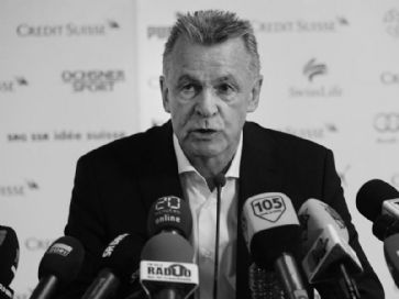 ![]() Ottmar Hitzfeld während der abschliessenden Medienkonferenz. /