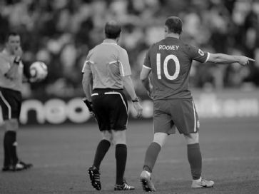 Wayne Rooney argumentiert mit Schiedsrichter Jorge Larrionda über den Tor-Entscheid. /