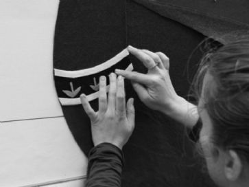 ![]() Bild 7: Natalie Gianninazzi bringt liebevoll Details an ihrer Textilen Arbeit an. /