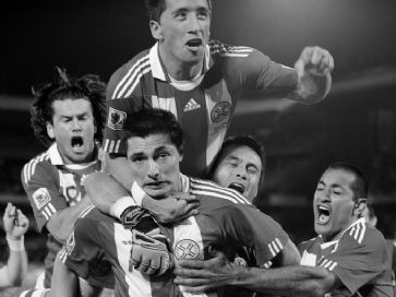 ![]() Oscar Cardozo jubelt nach seinem entscheidenden Elfmeter. /