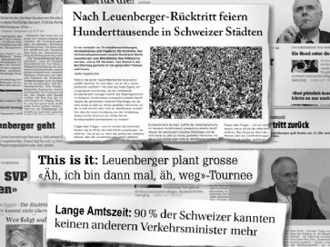 ![]() Der Grund für die vorzeitige Ankündigung liege darin, dass er nächstes Jahr Bundespräsident geworden wäre, sagte Leuenberger. Das Mitglied, das an der Reihe sei, müsse sich vorbereiten können. An der Reihe ist nach dem Rücktritt Leuenbergers turnusgemäss Aussenministerin Micheline Calmy-Rey. Leuenbergers Nachfolgerin oder Nachfolger wird am 8. Dezember 2010 gewählt. Am gleichen Tag besetzt die Bundesversammlung auch das Präsidium und das Vizepräsidium der Landesregierung neu. Leuenberger war am 27. September 1995 als Nachfolger von Otto Stich in den Bundesrat gewählt worden.