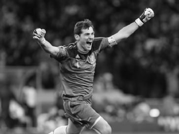 Karten über Karten Es war zwar kein Torfestival, dafür hagelte es Karten in Hülle und Fülle. Neun gelbe Karten, davon eine Gelb-Rote gegen John Heitinga auf Seiten der «Oranje». Die Spanier kassierten «nur» fünfmal den gelben Karton. Der Platzverweis gegen Heitinga in der 109‘ dürfte beim entscheidenden Tor wohl kaum ausschlaggebend gewesen sein. Nigel de Jong und Andres Iniesta, vorallem natürlich Siegtorschütze Iniesta vom FC Barcelona, konnten glücklich sein, nicht ebenfalls einen Platzverweis erhalten zu haben.Weltmeister-Goalie Iker Casillas lässt seiner Freude freien Lauf. /