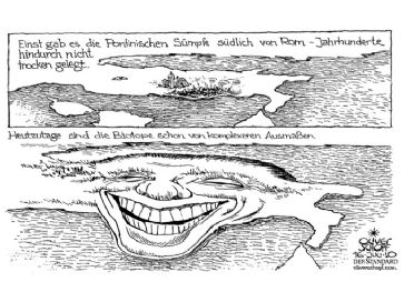 Trotz Hitzewelle: Italiens Sumpf wächstWährend europaweit Gluthitze und Trockenheit vorherrschen, hat in Italien die Ausdehnung des Berlusconi-Sumpfs einen neuen Rekordstand erreicht.Quelle: Nebelspalter / Freitag, 16. Juli 2010 / 11:59 h