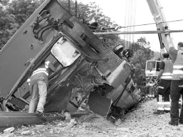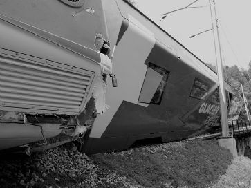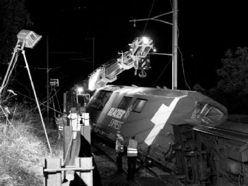 Den Helfern bot sich ein dramatisches Bild: Die Wagons waren entgleist und umgekippt. / Foto: Markus Heinzer newspictures.ch