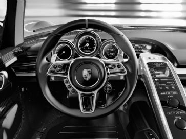 ![]() Auch im Cockpit wird der Hightech-Anspruch klar gemacht: der Volant des 918 Spyder /