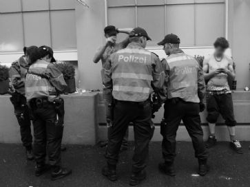 23 Festnahmen Im Lauf des Samstags und in der Nacht auf Sonntag wurden insgesamt 23 Personen festgenommen. Gründe dafür waren Widerhandlung gegen das Betäubungsmittelgesetz, Körperverletzung, Taschendiebstahl und Widerhandlung gegen das Ausländergesetz. Bei zehn Personen wurde die Staatsanwaltschaft eingeschaltet, drei Männer müssen mit fremdenpolizeilichen Massnahmen rechnen. Die übrigen Verhafteten kamen nach der Befragung wieder frei. Sichergestellt hat die Polizei 25 Gramm Kokain, 40 Gramm Marihuana, 30 Gramm Speed, 400 Gramm GHB/GBL, 30 Dosen Ecstasy sowie rund 700 noch unbestimmte Tabletten. Bis zum Sonntagvormittag gingen zehn Anzeigen wegen Diebstählen ein.Die Polizei durchsucht einen Raver an der Street Parade. /