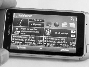 ![]() Homescreen mit Social Client auf dem Nokia N8. /