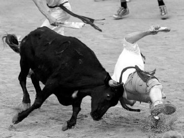 ![]() Er war von flüchtenden Zuschauern in seinen Sitz gedrückt worden. Ein 47-Jähriger wurde durch einen Hornstoss des Tieres schwer verletzt. Die anderen Opfer kamen mit leichteren Blessuren davon. Bei keinem der Verletzten bestand Lebensgefahr. Paradoxerweise hatte der Stier an dem angesetzten Stierkampf gar nicht teilnehmen sollen. Die Tierärzte hatten ihn als «untauglich» zurückgewiesen. Gerade als er aus der Arena abtransportiert werden solle, setzte er zu seinem Sprung auf die Ränge an - als wollte er die Mediziner eines Besseren belehren. Seltener Fall Nach Angaben von Experten ist es äusserst ungewöhnlich, dass ein Kampfstier aus der Arena in die Publikumsränge springt. «So etwas passiert ein Mal bei einer Million Stierkämpfen», sagte der Rinderzüchter Jesús Macua der Zeitung «Diario de Navarra». «Da kann man niemandem die Schuld geben.» In Spanien wird derzeit lebhaft über den Stierkampf debattiert, nachdem die Region Katalonien ihn Ende Juli verboten hatte. Katalonien brach als erste spanische Region mit der jahrhundertealten Tradition.