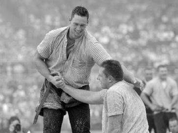 Sie waren wie andere Schwinger in der Militär-Kaserne neben der Schwing-Arena untergebracht. Wie haben Sie in der Nacht auf Sonntag geschlafen? «Nicht so gut wie jeweils zuhause. Aber ich hatte am Samstagabend kein schlechtes Gefühl. Ich dachte mir, dass ich nichts zu verlieren hätte. Nach dem sechsten Gang wusste ich dann, dass ich den angestrebten Kranz auf sicher habe, und ich sagte mir, dass alles andere Zugabe wäre.» Hätten Sie vor dieser Saison mit einem derartigen Erfolg gerechnet? «Am Anfang des Jahres war ich sehr konstant, dann habe ich etwas nachgelassen, um jetzt auf das Eidgenössische hin einen sauberen Aufbau zu machen.» Am Anfang des Eidgenössischen fragte man sich, ob Kilian Wenger überhaupt am Fest teilnehmen würde. Als Sie zum 1. Gang gegen Bruno Gisler aufgerufen wurden, erschienen Sie eine Weile nicht. Was war da los? «Dies war ein technischer Fehler. Auf dem Bildschirm, der uns im Schwinger-Zelt zur Verfügung stand, wurde nicht angezeigt, dass ich an der Reihe gewesen wäre. So musste mich jemand rufen, damit ich überhaupt merkte, dass mein Einsatz ansteht.» Mit 101 Kilogramm bei 1,90 Meter Körpergrösse sind Sie nicht ein derartiger Brocken wie andere Schwinger. Wollen Sie Botschafter sein für eine athletischere Ausübung der Sportart? «Hm... ich fühle mich einfach so, wie es momentan ist, wohl in meinem Körper.»Was wird sich für Sie in der Zukunft verändern? «Ich glaube, dass ich jetzt erstmal Zeit für mich brauche. Vom Typ her bin ich eher ein ruhiger, und das ist gut so. Vielleicht ändert sich dies, wenn ich der Gejagte bin.» Welche Meinung haben Sie dazu, ob die Schwinger mit ihrem Sport Geld verdienen dürfen? «Bei dem Aufwand, den wir betreiben, sollte schon etwas rausschauen. Den Muni werde ich nicht behalten, sondern zurückgeben und das Geld nehmen.»