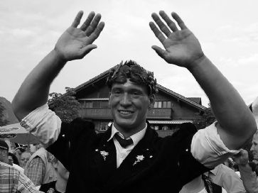 ![]() Er zeigte sich überzeugt, dass das ganze Land auf diesen «sympathischen und bescheidenen» Burschen stolz ist. Der bernische Regierungsrat Hans-Jürg Käser würdigte Wenger als «Naturburschen aus dem Diemtigtal», der gezeigt habe, wer der wahre König der Schweiz sei. Der Diemtiger Gemeindepräsident Peter Knutti zeigte sich «unsäglich stolz über den sportlichen Helden aus dem Tal». Und er gratulierte auch dem zweiten Kranzträger aus dem Tal, Beat Wampfler. Urchige Feier Viele Redner erinnerten daran, dass das Simmental zum zweiten Mal nach 1972 den eidgenössischen Schwingerkönig stellen darf. Schliesslich fanden auch die Vertreter des kantonalbernischen Schwingerverbandes für ihr Aushängeschild überaus lobende Worte. Kilian Wenger dankte den weit über 1000 erschienenen Gästen. «So etwas wie in Frauenfeld habe ich noch nie erlebt», sagte er. Umrahmt wurde die Feier von Jodelgesang und urtümlichem Dröhnen von Treichlern.