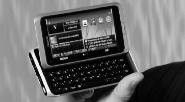 Äusserlich ist diese Verwandtschaft dem neuen Business- und Multimedia-Handy nicht anzusehen, kommt es doch mit einem grossen Touchscreen, der aufgeschoben wird und sich dabei in schrägem Winkel vom restlichen Gehäuse aufrichtet. Bisherige Communicator-Modelle von Nokia lassen sich wie ein Laptop aufklappen, teilweise sogar bis zu einem 180-Grad-Winkel. Die umfangreiche, zur Verwaltung und Bearbeitung von Daten ausgerichtete Ausstattung des Nokia E7 ist jedoch vergleichbar mit der von Communicator-Geräten wie etwa dem bislang letzten Modell, dem Nokia E90. Nur: Dem aktuellen Trend folgend hat Nokia beim E7 auch bei den Multimedia-Funktionen nicht gespart.