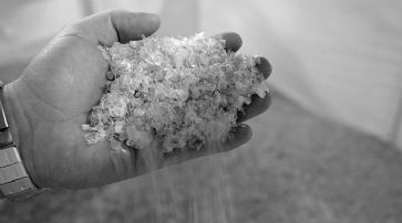 ![]() Kontrolle von PET-Kunststoffmahlgut, das aus gebrauchten PET-Flaschen gewonnen wird /