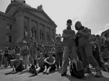 Rund 1500 Personen aus der ganzen Schweiz fanden sich in Bern ein, um sich solidarisch mit von Brustkrebs Betroffenen zu zeigen, wie die Krebsliga mitteilte. Unter den Anwesenden befanden sich auch zahlreiche Personen, die ihre selbst gestrickten Quadrate für die Herstellung der Schleife beigesteuert hatten.