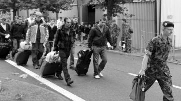 Noch nie seit dem Start der Armee XXI und seit der Einführung der Winter-RS im Jahre 2004 seien so viele Einrückenden erwartet worden, sagte Christoph Brunner, Informationschef Verteidigung, auf Anfrage. Der bisherige Rekord lag bei der Winter-RS 2009 mit 8500 Einrückenden. Die Winter-Rekrutenschule sei immer besser belegt als die Frühlings- oder die Sommer-RS, sagte Brunner. Diese Zeitperiode komme vor allem Studenten und Schülern entgegen. Letzten Frühling waren 7600, im Sommer 7400 Einrückende angemeldet. Angesichts des grossen Andrangs zur Winter-RS rechnet die Armee für alle 27 Schulen mit einer maximalen Auslastung. Sehr hohe Einrückungsbestände haben laut VBS die Schulen der Infanterie, der Panzer-, Genie-, Sanitäts- und Flabtruppen sowie die Bereiche Verkehr und Transport, Führungsunterstützung Luftwaffe und Infrastruktur/Hauptquartier (Infra/HQ).Umteilungen Möglicherweise überbelegt ist die Infra/HQ RS 35, wie Brunner weiter sagte.Die Rekruten rücken in die Kaserne ein. (Archivbild) /