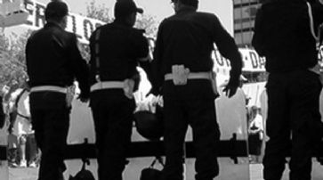 Die Mexikanische Polizei schirmt die Öffentlichkeit ab. /