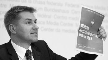 Teilnehmende wünschen härtere Politik Die SVP folgert aus den Antworten, dass sich viele eine härtere Ausländerpolitik wünschen. «Selbstverständlich prüfen wir, ob sich eine weitere Volksinitiative aufdrängt», sagte Brunner.Parteipräsident Toni Brunner mit dem SVP-Befragungsblatt ihrer Mitglieder. / Foto: EQ Images