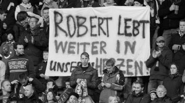 Hannovers Fans gedenken mit einem Transparent dem Torhüter Robert Enke. /