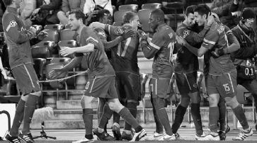 ![]() - 34 239 Zuschauer. - SR Duhamel (Fr). - Tor: 15. Almerares 1:0. Basel: Costanzo; Inkoom, Abraham, Ferati, Safari; Tembo (90. Zanni), Cabral, Yapi, Shaqiri (87. Granit Xhaka); Frei (92. Cagdas), Almerares. Cluj: Nuno Claro; Tony, Cadu, Piccolo, Rada; Culio (74. Sforzini), Tomas Costa, Kivuvu, Leo Veloso (58. Koné); Traoré (46. Bjelanovic), Rafael Bastos. Bemerkungen: Basel ohne Stocker (gesperrt), Chipperfield, Huggel, Kusunga, Streller und Zoua (alle verletzt). Cluj ohne Muresan (verletzt). 60. Nuno Claro lenkt Tembo-Schuss mit dem Fuss an die Lattenunterkante. 73. Tor von Frei wegen Abseits nicht anerkannt. 87. Rote Karte gegen Piccolo (Schubser gegen Almerares). -- Verwarnungen: 14. Almerares (Foul), 30. Leo Veloso (Foul). Gruppe E: Basel - Cluj 1:0 AS Roma - Bayern München 3:2. Rangliste: (je 5 Spiele): 1. Bayern München 12. 2. AS Roma 9. 3. Basel 6. 4. Cluj 3.