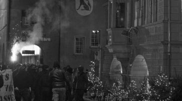 ![]() In der Marktgasse kletterte ein Kundgebungsteilnehmer eine Fassade hinauf und zerstörte mit einer Fackel eine Schweizerfahne. Vor dem Bundeshaus wurden Polizisten vereinzelt mit Flaschen und Schneebällen beworfen, wie die Kantonspolizei Bern mitteilte. Eine Person wurde vorübergehend festgenommen. Gegen Ende der Kundgebung kam es zu Sachbeschädigungen. Einzelne Vermummte schlugen die Eingangstüre zu einem Hotel ein und warfen die Scheibe der Berner Niederlassung einer Grossbank ein. Viele Kundgebungsteilnehmer quittierten diese Gewalt mit Buhrufen. Eine junge Frau stellte sich schützend vor die Hoteltür. Mit diesem Szenario gerechnet Um 19.30 Uhr ging die Polizei, die mit einem ziemlich grossen Aufgebot präsent war, auf der Schützenmatte gegen den harten Kern der Demonstranten vor, worauf sich diese ins alternative Kulturzentrum Reitschule zurückzogen. Der Sicherheitsdirektor der Stadt Bern, Gemeinderat Reto Nause, sagte der Nachrichtenagentur SDA vor Ort auf Anfrage, die Behörden hätten mit einem solchen Szenario gerechnet. Die Polizei sei vorbereitet gewesen.