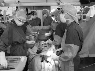 Herausziehen des Kindes beim Kaiserschnitt. /